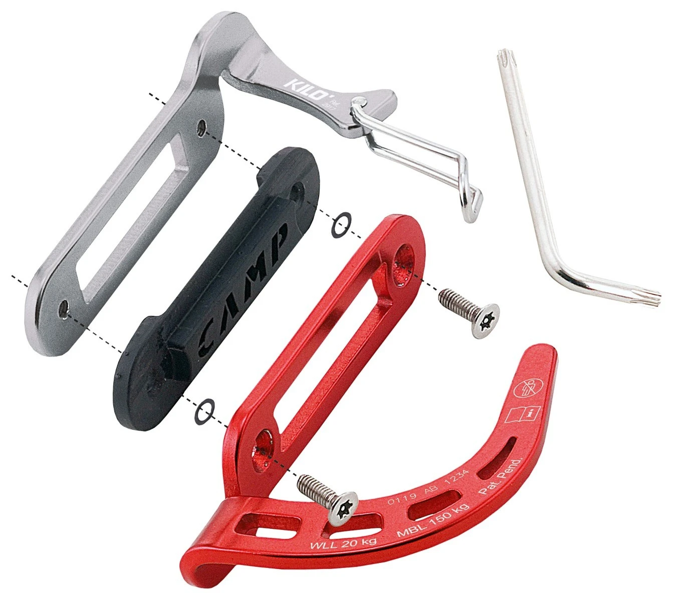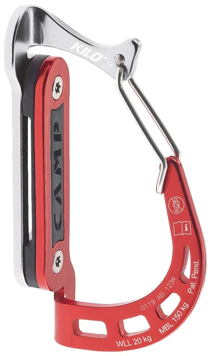 Camp Kilo on kestävä ja tukeva työkalukoukku valjaisiin. Kaksiosaisen rungon ansiosta se on helppo kiinnittää tukevasti valjaisiin. Max. kuorma 20 kg. Koukun materiaali alumiinia ja portti ruostumatonta terästä. 150 kg kuormituksesta koukku hajoaa suojaten käyttäjää. Valjaiden vyön max. koko 45 mm.