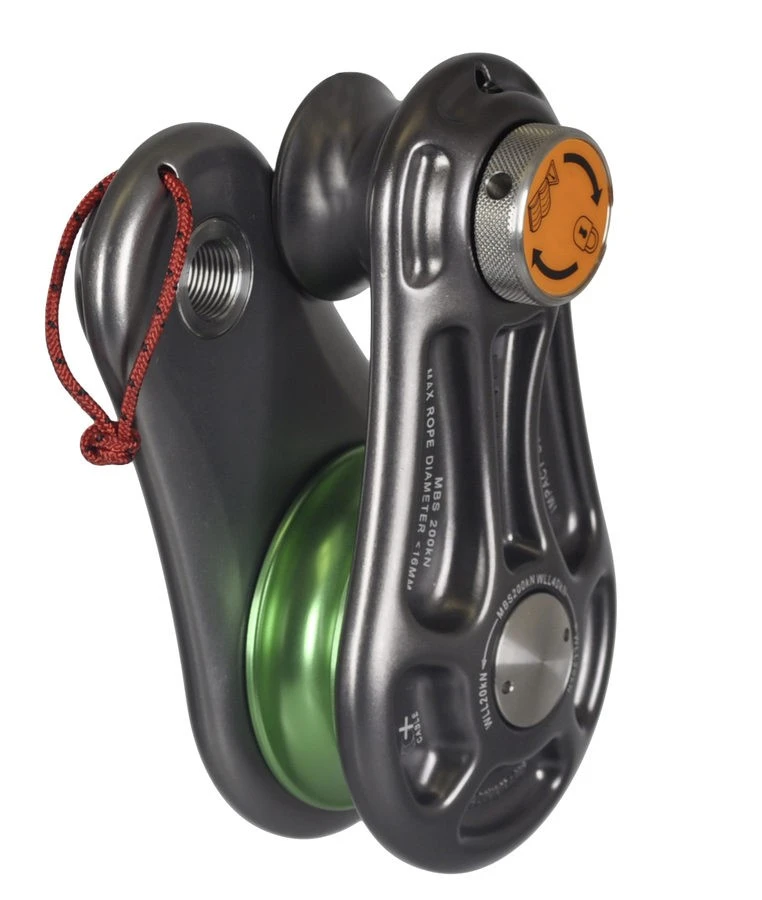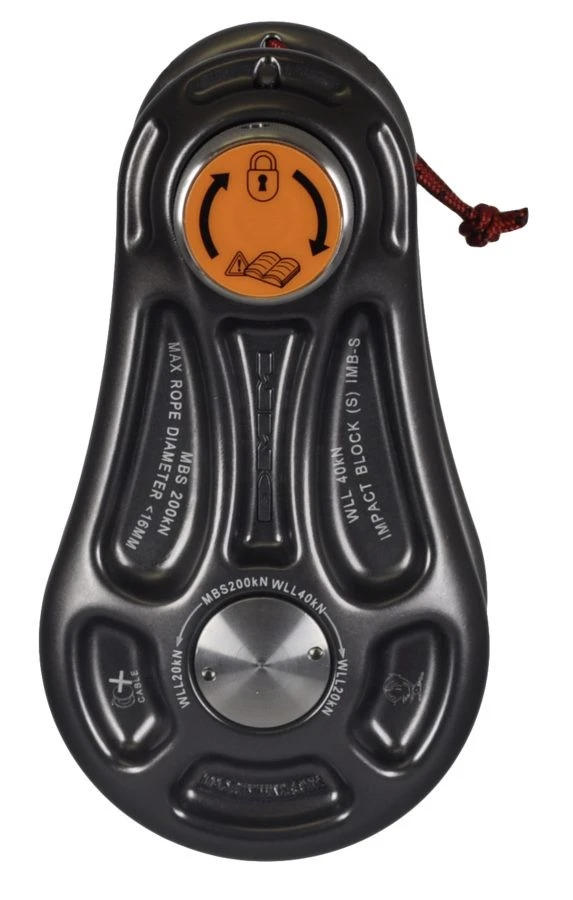Kuulalaakeroitu alaslaskuploki kääntyvillä sivulevyillä. Reilun kokoinen lukitusruuvi, jota on helppo käyttää myös käsineet kädessä. Kaikki reunat ovat pyöristettyjä, joka vähentää köysien kulumista.
