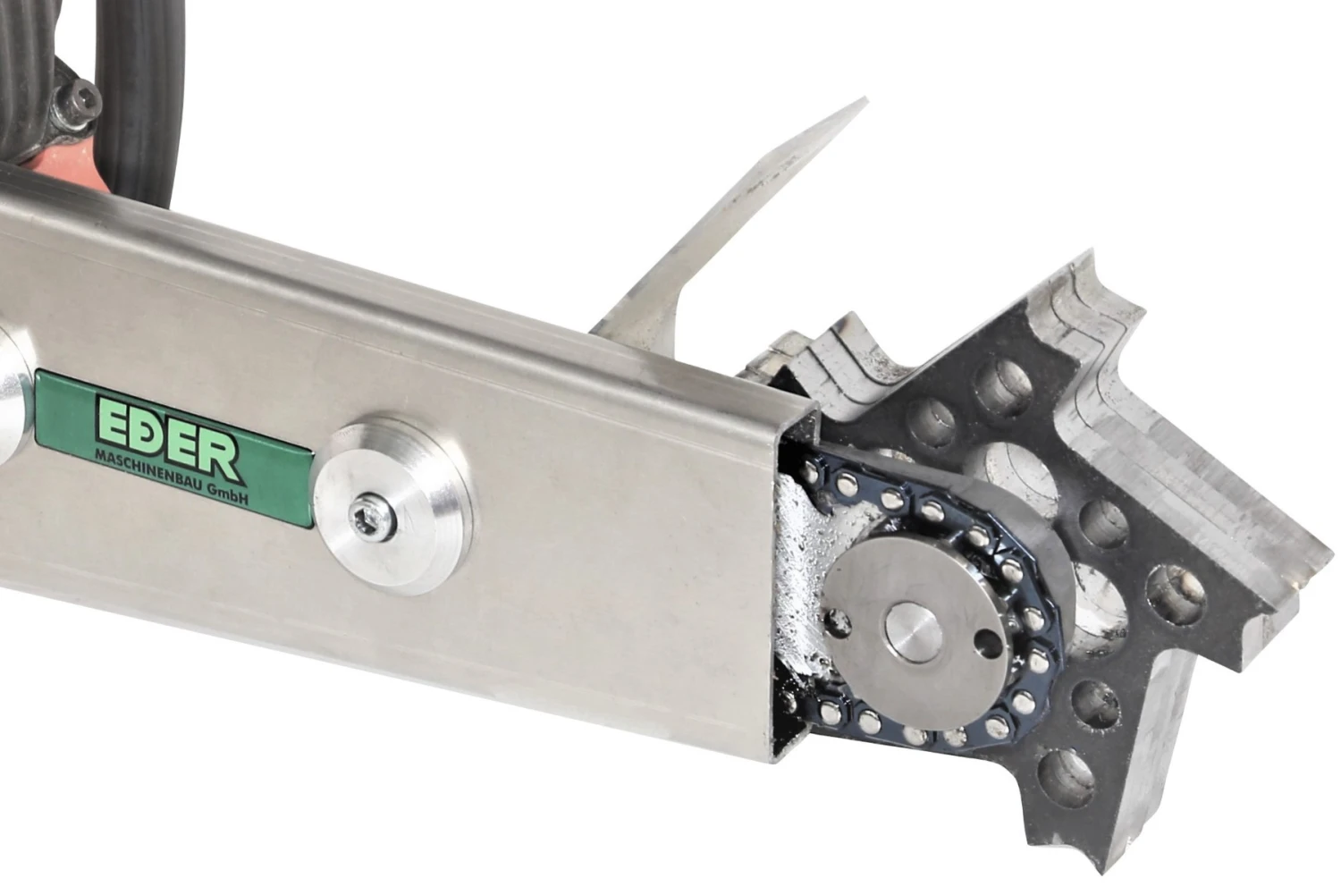 Ketjuvetoinen urajyrsin asennetaan moottorisahaan Ederin sovitesarjan avulla. Sovitesarja valitaan moottorisahan ketjujaon ja laipan kiinnitysuran mukaan.
