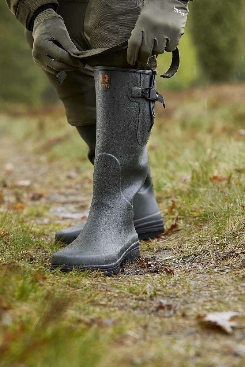 100 % :sta luonnonkumista valmistetut kumisaappaat niin vapaa-aikaan kuin työhön. Saappaissa on säädettävä pohjeosan leveys, joka takaa erinomaisen käyttömukavuuden. Pohjan kuviointi on pitävä ja kantapäässä on iskunvaimennus. Saappaissa on miellyttävän tuntuinen Jersey-puuvillavuori.