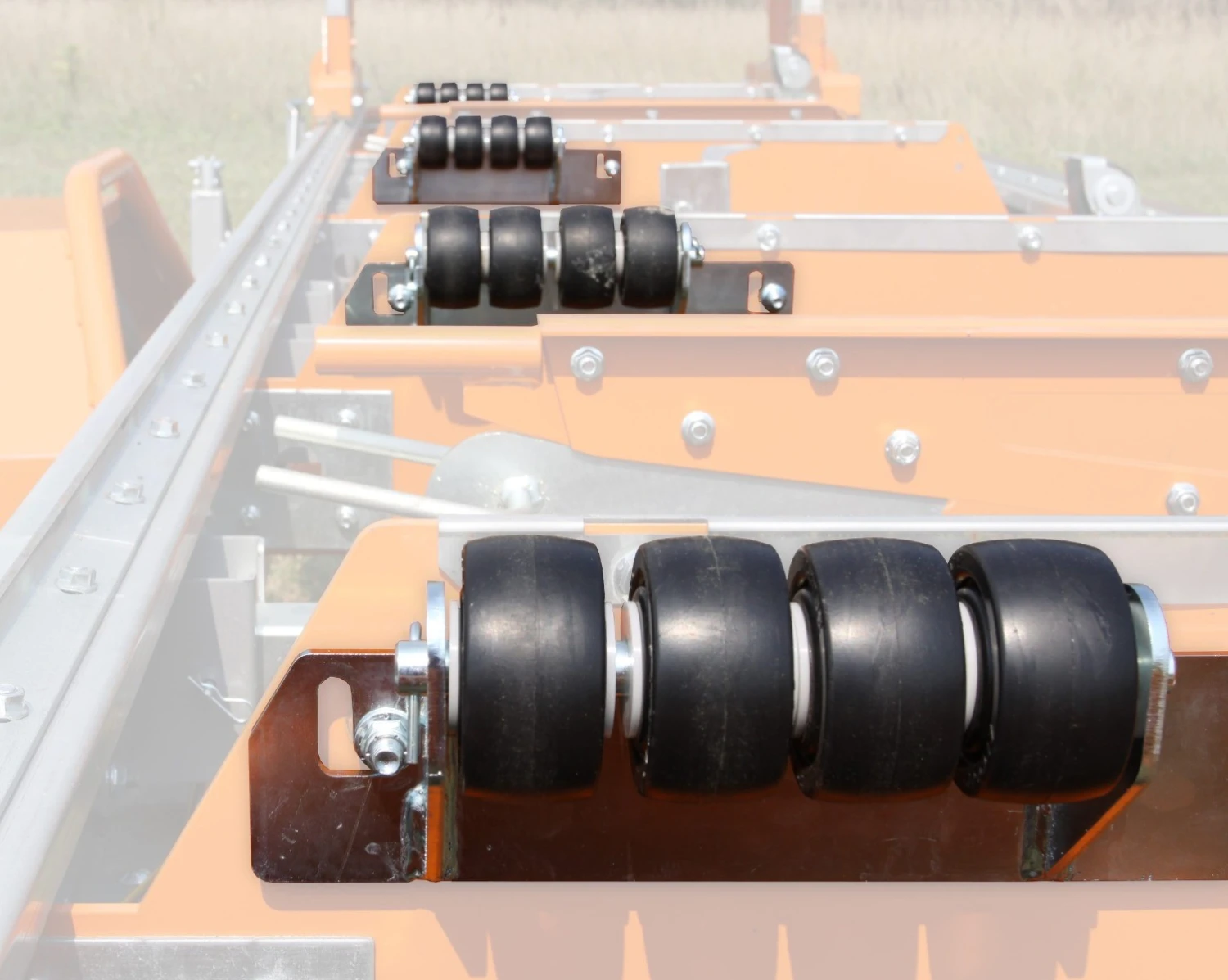 Valmiiden lautojen radalta poistoa ja laudan pinoamista helpottava lisävaruste. Voit siirtää purkurullat nopeasti pois tukkien tieltä tarvittaessa.