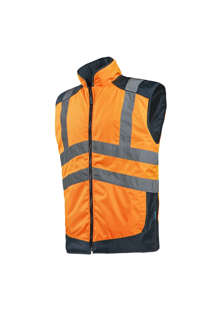 Tuulenpitävä huomiovärinen lämpöhuomioliivi. Ulkokangas vettähylkivää. Voidaan käyttää myös kääntöliivinä. Toinen puoli musta. Vetoketjukiinnitys. Kaksi taskua molemmilla puolilla.