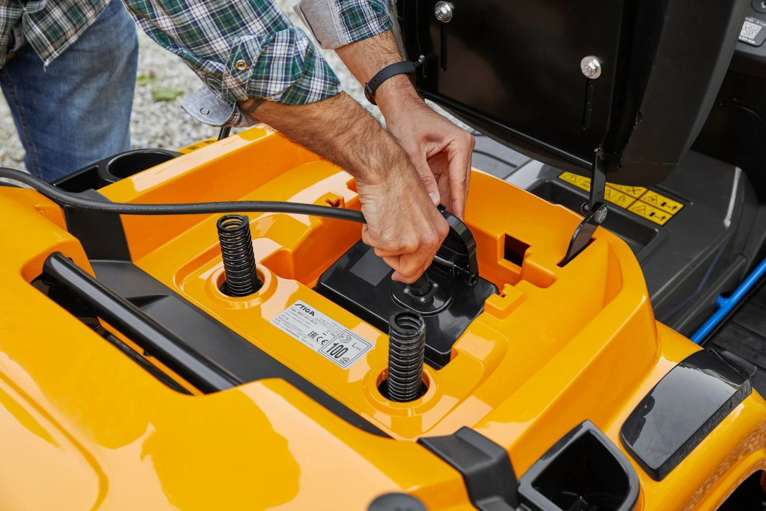 Erittäin tehokkaalla 48V, 40 Ah -akulla varustetussa e-Ride S500 -akkutraktorissa on tarpeeksi tehoa suoriutumaan jopa 3 000 m2 nurmialueista jopa 60 minuutissa yhdellä latauksella.