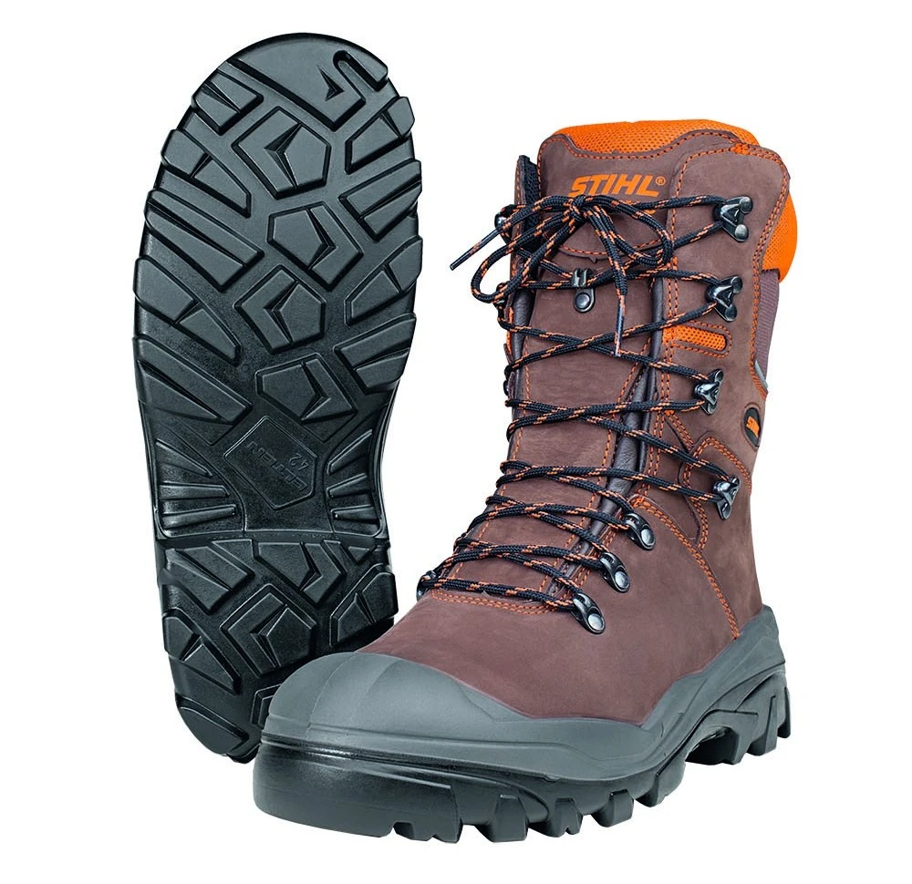 Stihl Dynamic S3 turvasaappaiden pintamateriaali on korkealaatuista vettähylkivää nupukkinahkaa. Dynamic S3 turvakengät ovat monikäyttöiset esim. rakennustyömailla ja erilaisissa metsätöissä. Ruskeat, erityisen hengittävä vuori parempaan kosteudensiirtoon ja pehmustetut nilkat. Stihl Dynamic S3 turvakengissä on kestävä nauhoitus järeillä nauhakoukuilla, ergonomiset pohjalliset ja teräsvälipohja suojaa esim. naulaanastumisilta. Kulutusta kestävät, iskunvaimennettu PU-välipohja. Erinomainen pito, kiitos hyvin suunnitellun pohjan. Teräskärki.