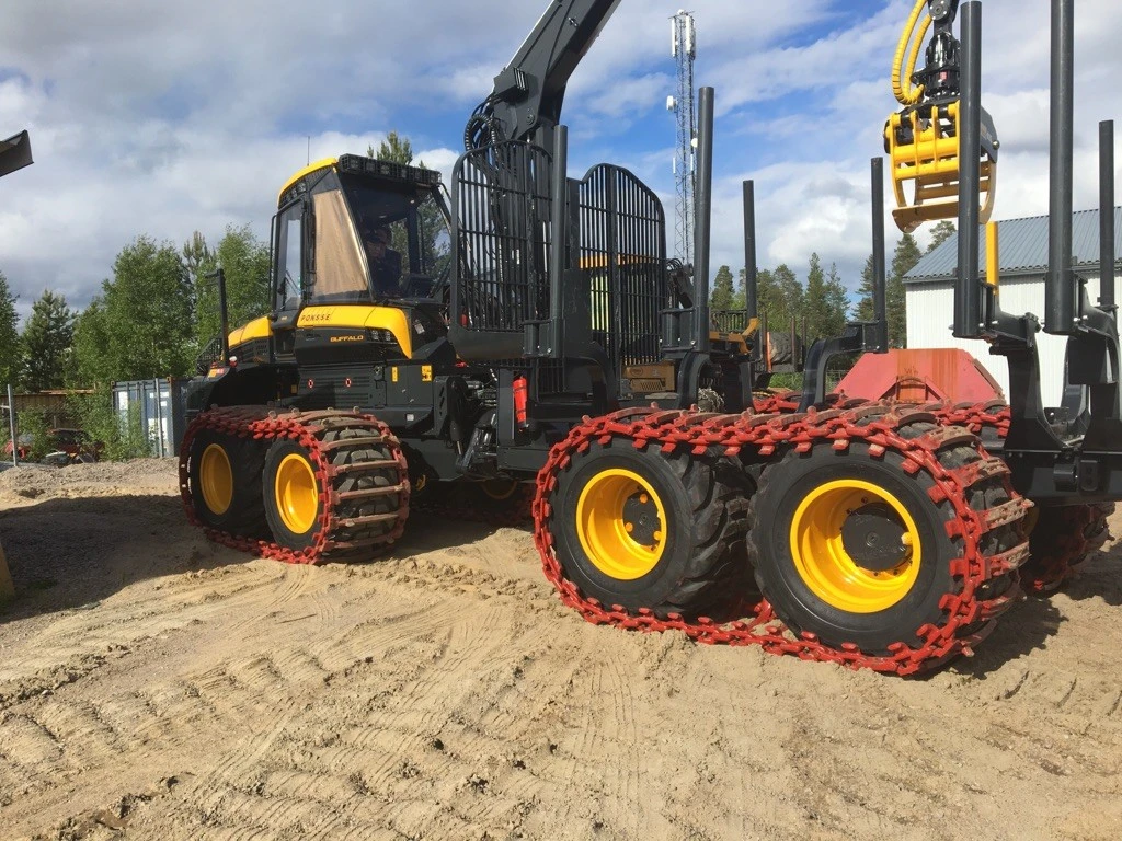 Vetävät telat 920mm leveällä telalapulla (kuvassa tavallisen perusversion vetävä tela koneen etupäässä).