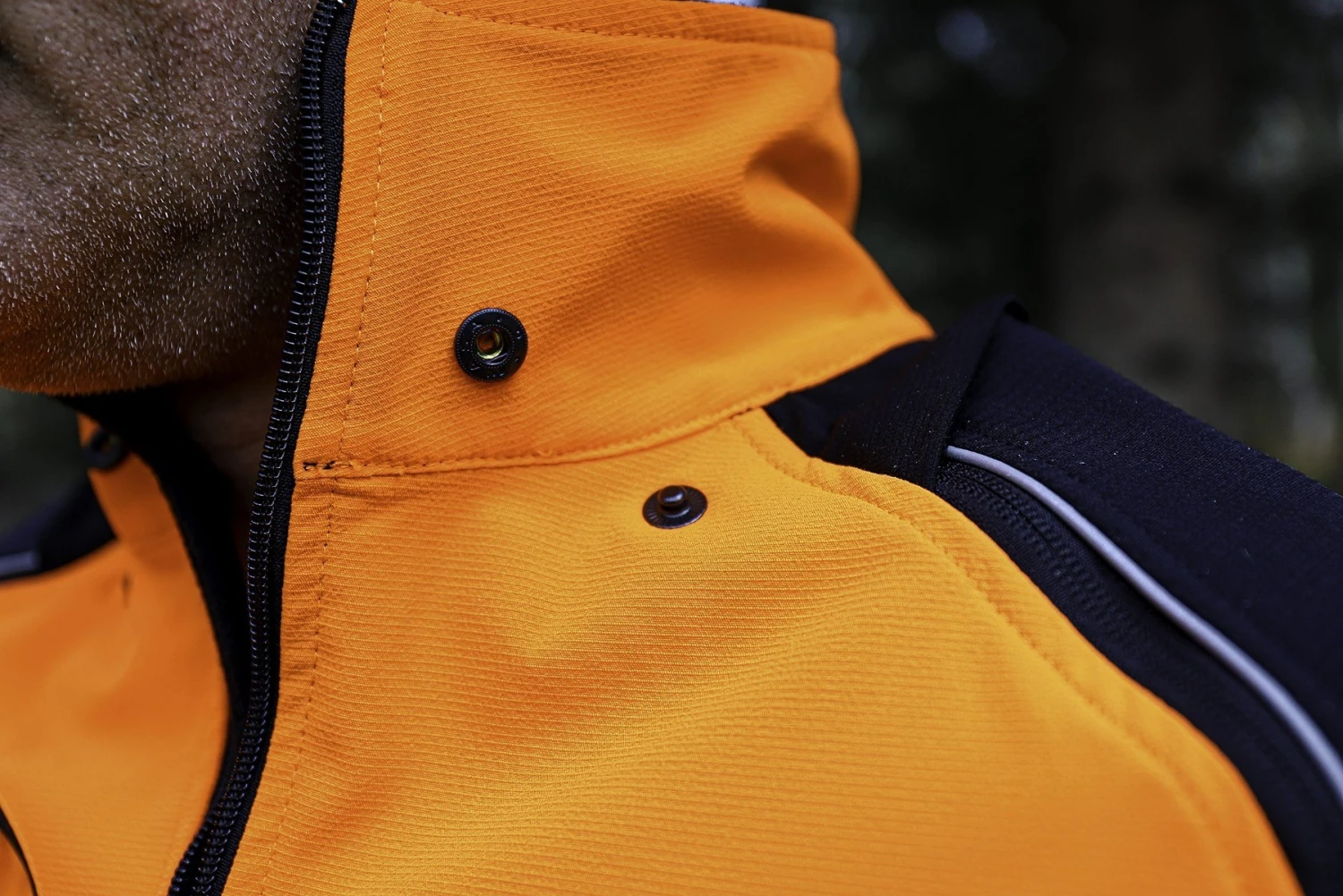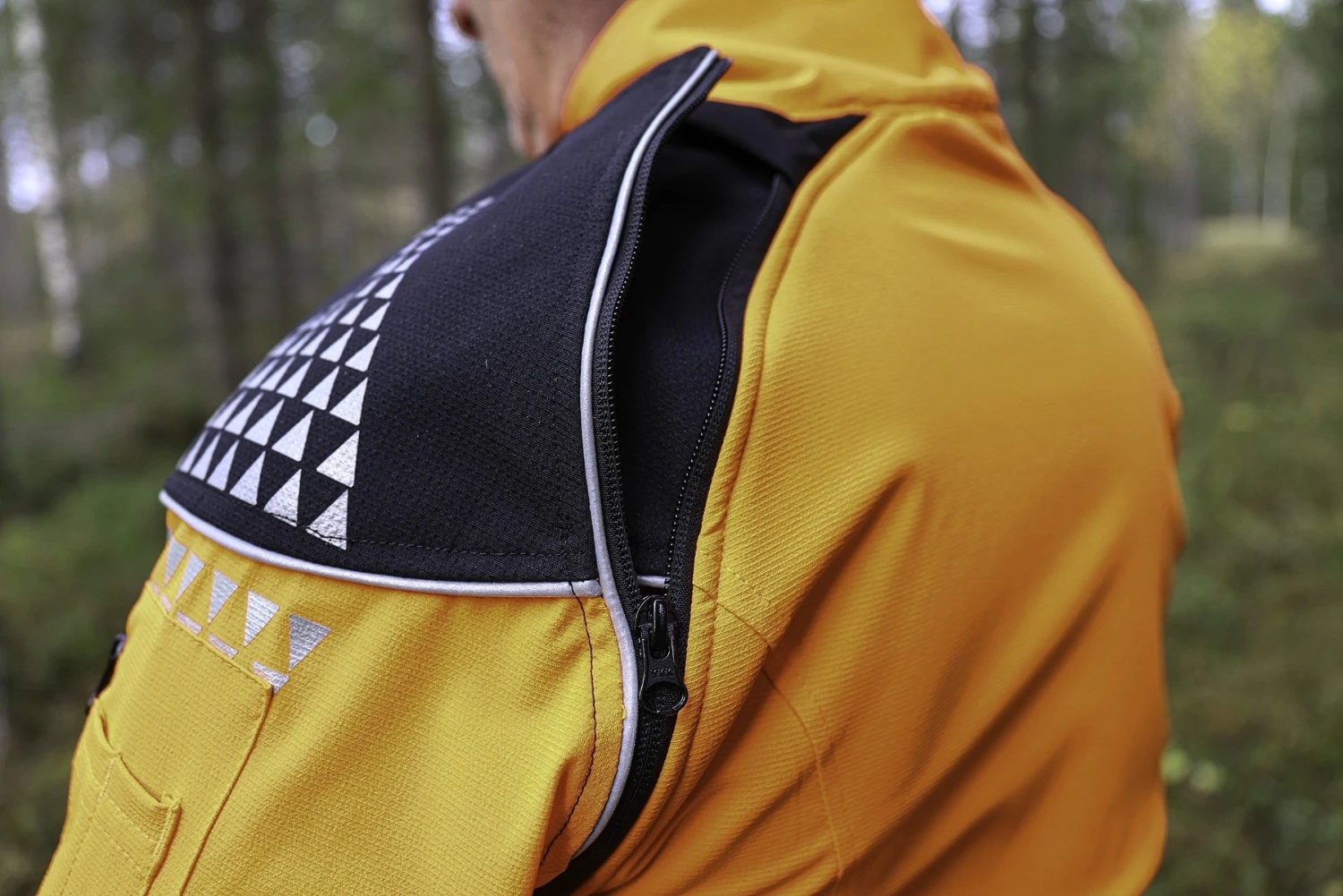 Materiaali on joustavaa Strecth-kangasta ja kriittiset paikat on vahvistettu Corduralla. Kangas on likaa- ja vettähylkivää. Selässä on vetoketjulliset tuuletusaukot sekä pidennetty selkäosa. Kaulus on fleecevuorattu, joka tuntuu miellyttävältä ihoa vasten. Hihansuut on säädettävissä Velcro-tarranauhoin. Kaksi vetoketjullista sivutaskua, vetoketjullinen rintatasku sekä hihatasku matkapuhelimelle.