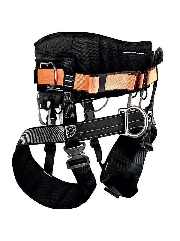 Laadukkaista materiaaleista valmistettu kevyt kiipeilyvyö liukuvalla D-renkaalla. Anatomisesti muotoiltu 200 mm leveä selkätuki. Pikalukot lantiovyössä sekä reisilenkeissä. 6 kestävää D-rengasta tarvikkeille. EN813/358.