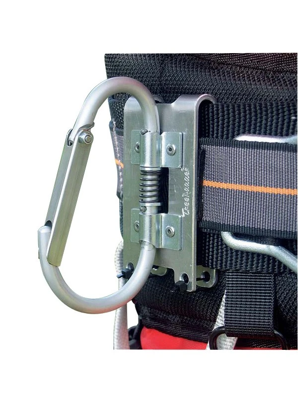 Vyölle kiinnitettävä karbiinihaka mm. moottorisahan kiinnittämiseen. Sopii 80 mm ja sitä kapeammille vöille. Silloin kun koukku ei ole käytössä, se voidaan kääntää sivuttaisasentoon.